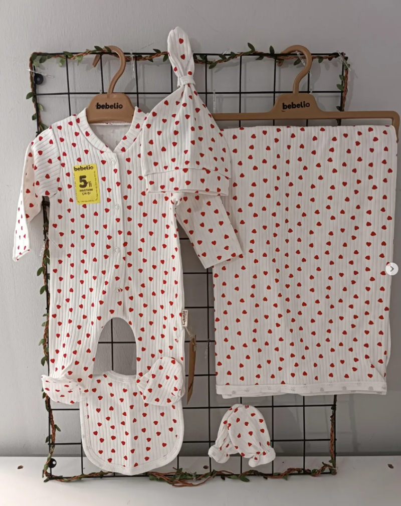BEŞLİ BATTANİYELİ BEBE TULUM SET - MİNİ KALP DESEN