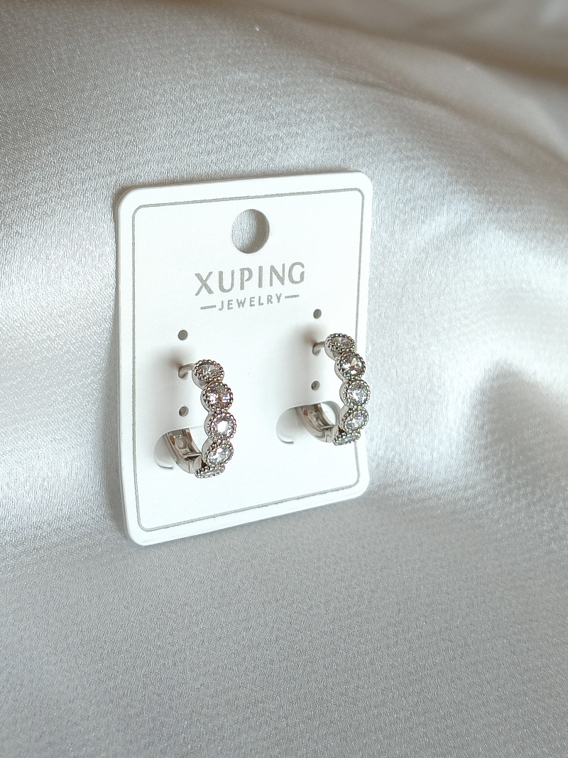 Xuping Minimal Sıralı Taşlı Silver Küpe