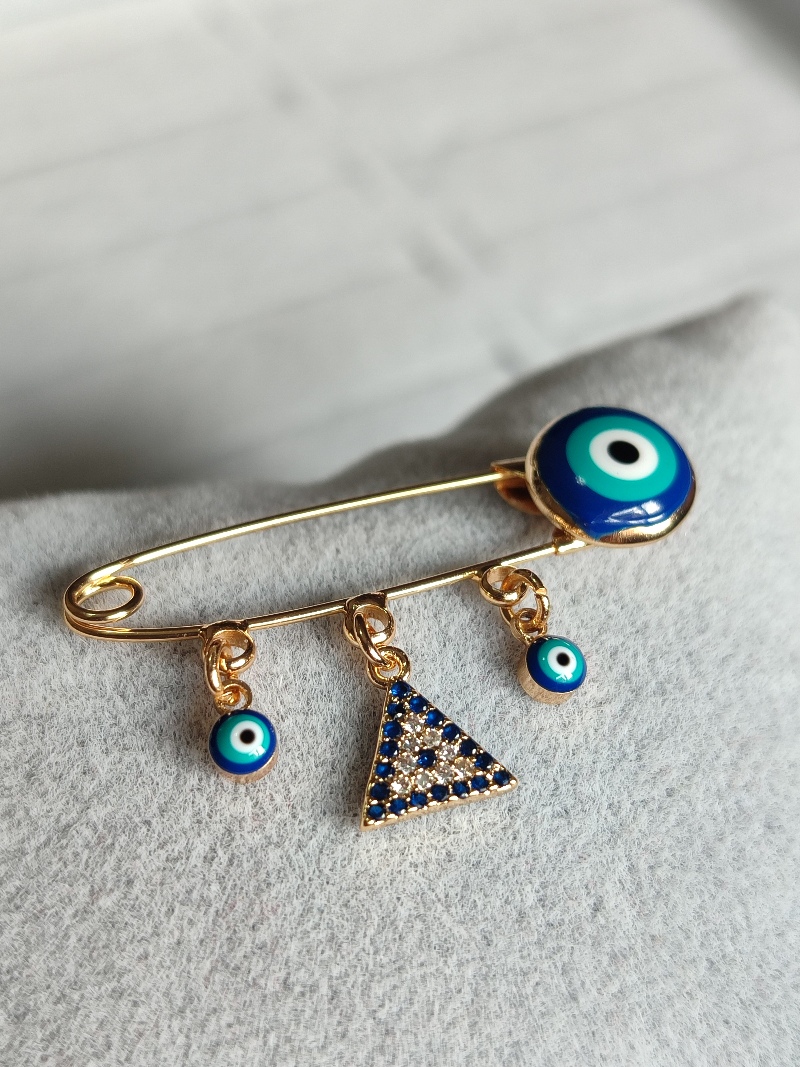 Ysx Nazar Boncuklu Üçgen Gold Broş