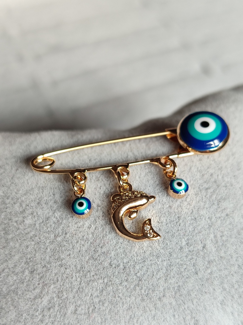 Ysx Nazar Boncuklu Balık Gold Broş