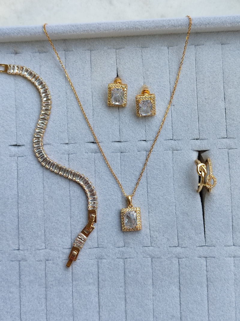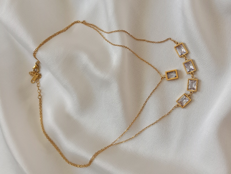 Çelik İkili Baget Taş Gold Kolye