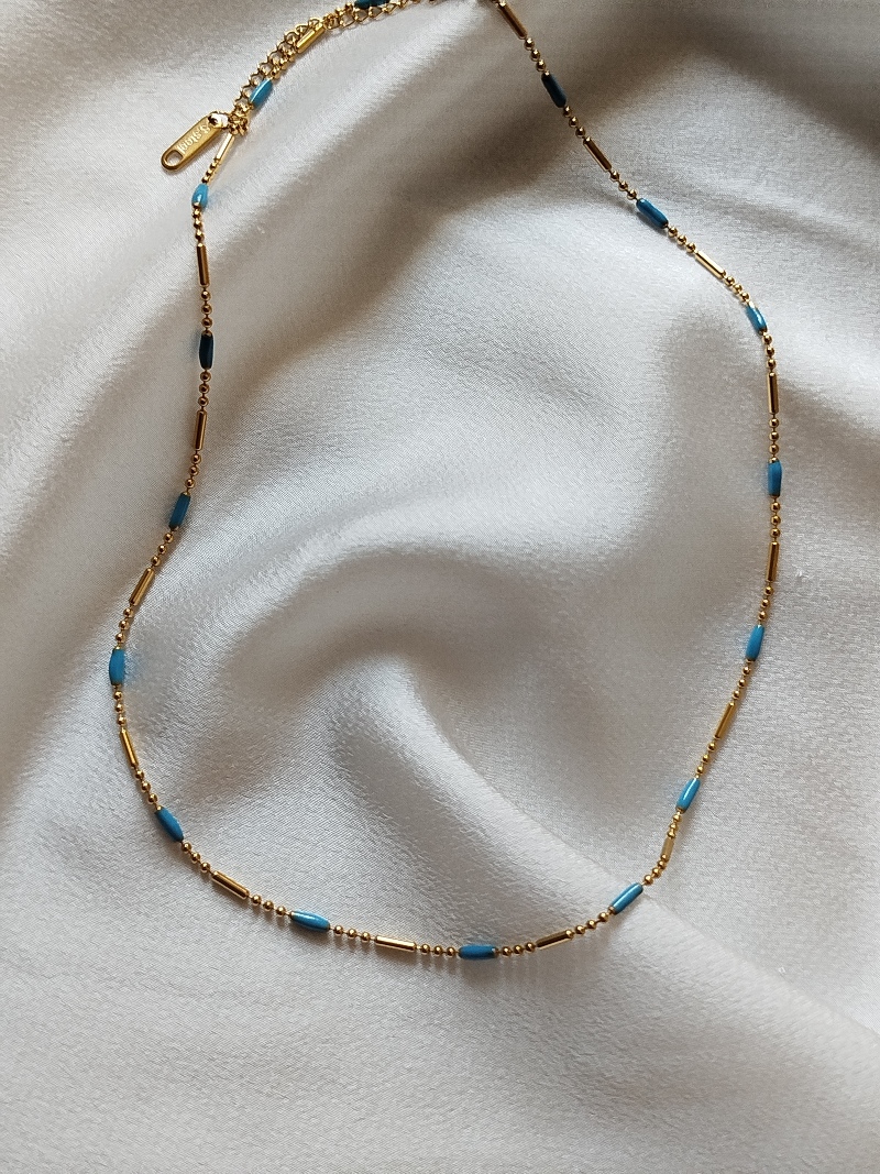 Çelik Gold Mavi Geçişli Kolye