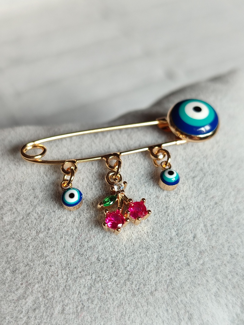 Ysx Nazar Boncuklu Kiraz Gold Broş