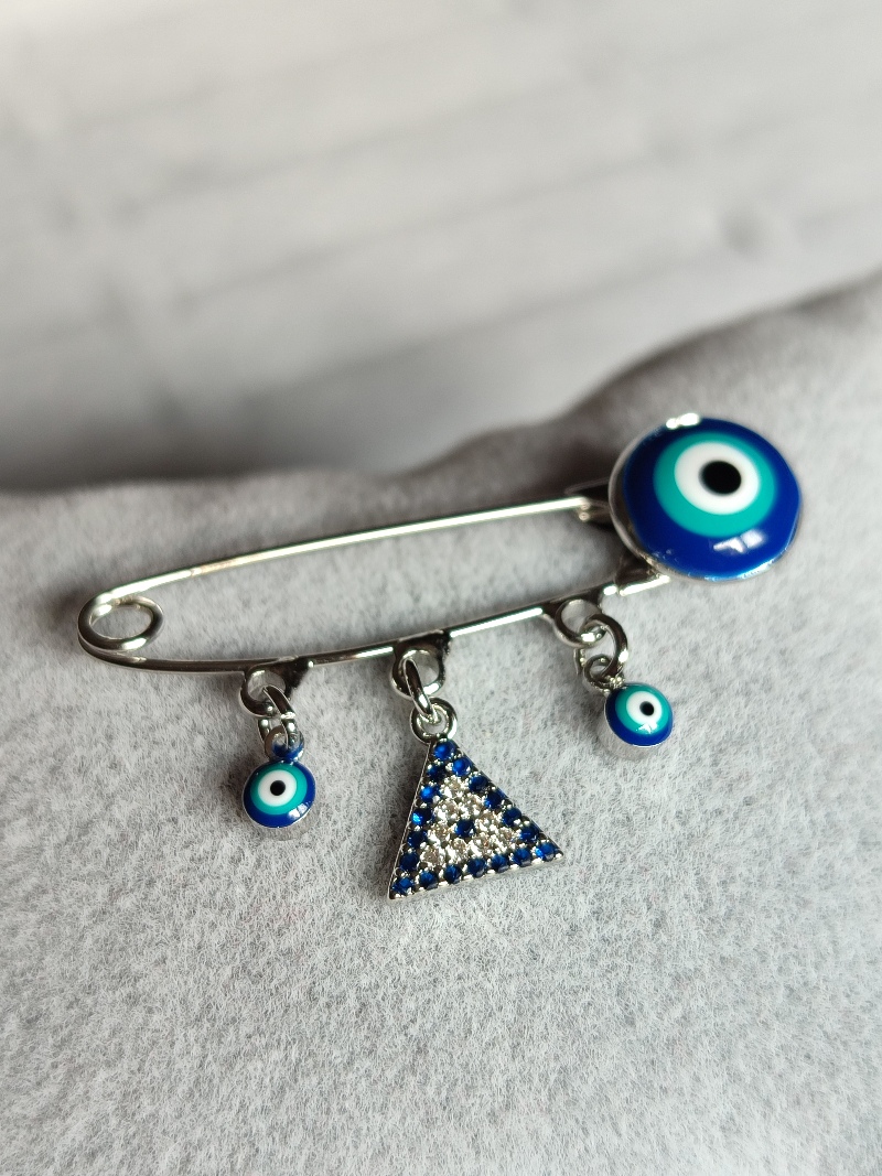 Ysx Nazar Boncuklu Üçgen Silver Broş