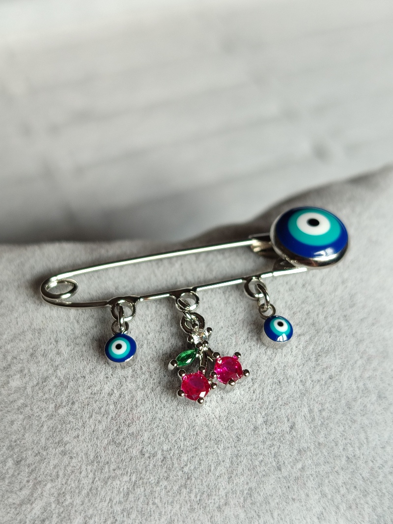 Ysx Nazar Boncuklu Kiraz Silver Broş
