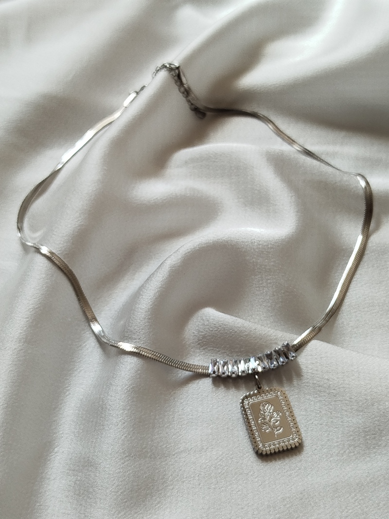Çelik Silver Güllü Ezme Kolye