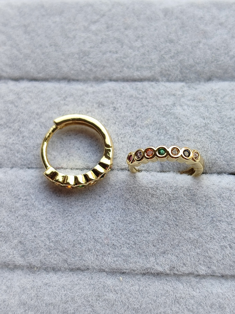 Xuping Minimal Renkli Taşlı Gold Halka Küpe